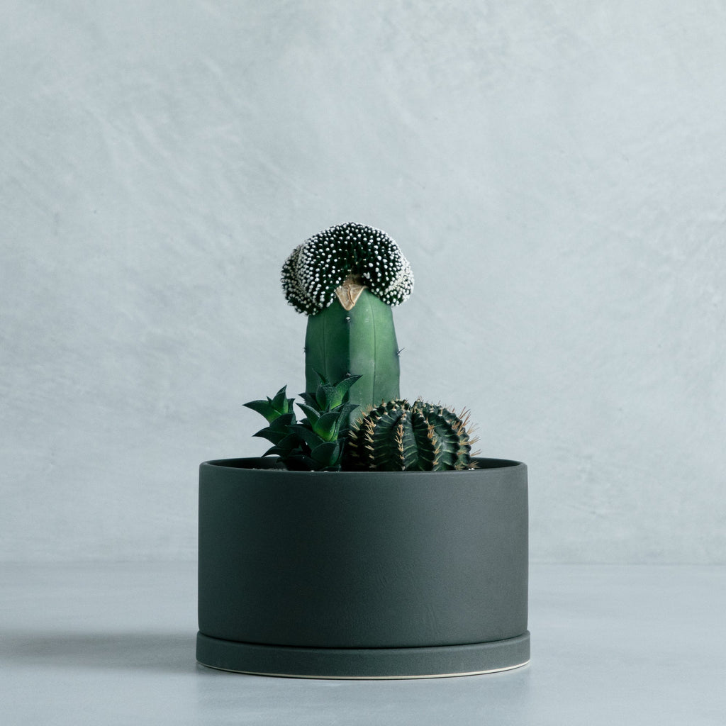 寄せ植え (テヌイシマ綴化 接ぎ木、ハオルチア ビスコーサ、牡丹玉)