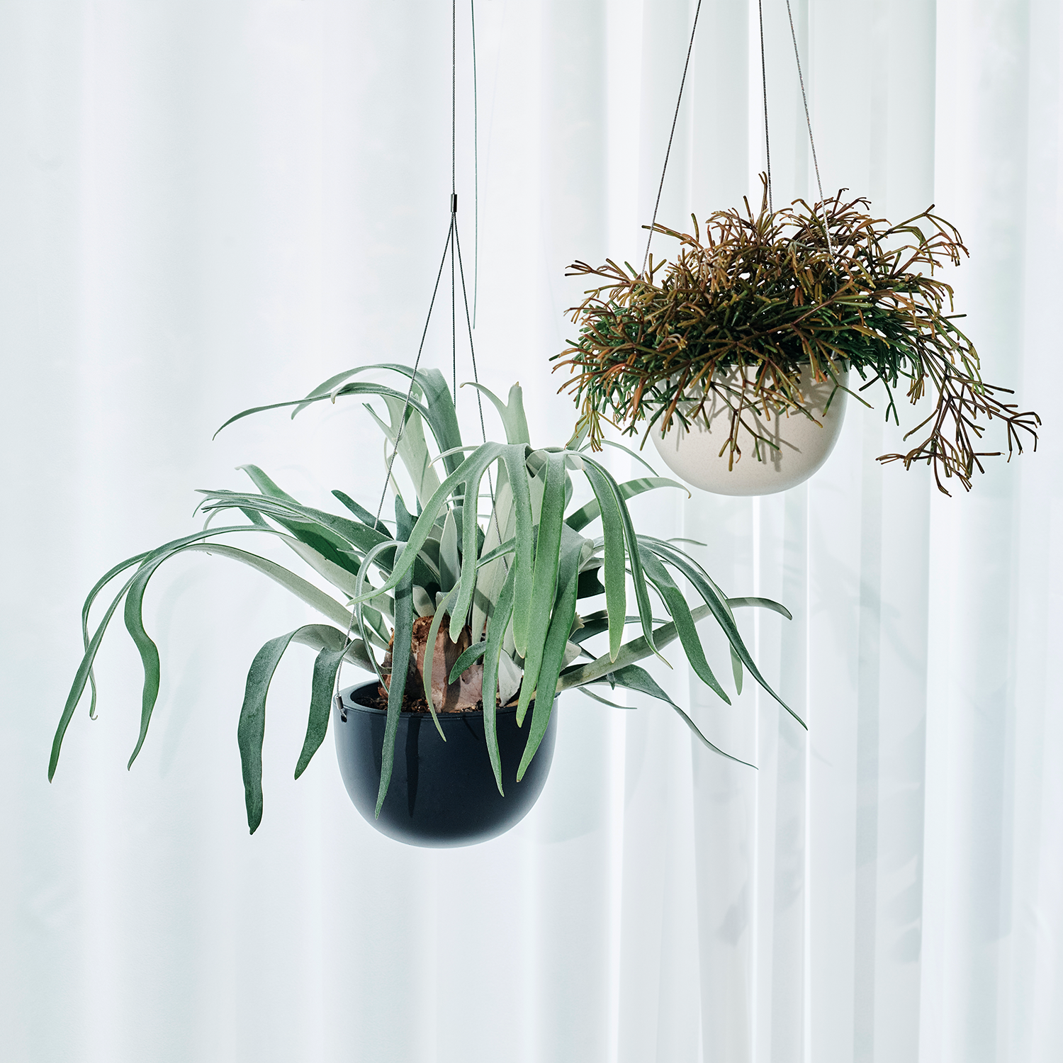 鹿の角のような細長く切れ込みが深い葉の観葉植物。垂れ下がる葉が羽ばたくコウモリを連想させることから「コウモリラン」とも呼ばれています。直射日光の当たらない風通しの良い場所で管理し、土がしっかりと乾いてから水を与え、水やりとは別に霧吹きで葉水を行いましょう。根本にある裸葉には水や養分を蓄える役割があるため、茶色くなっても取り除かないようにしましょう。